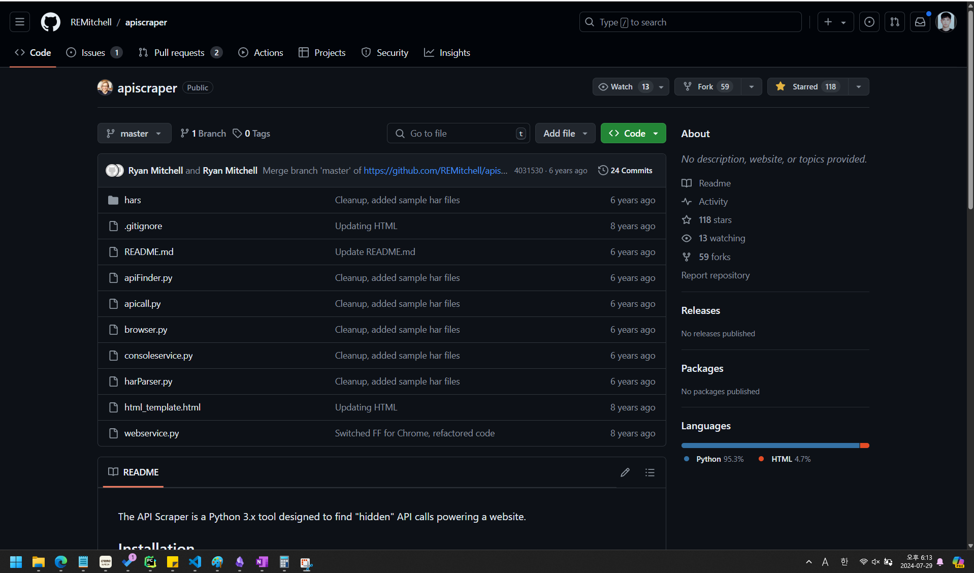 API가 문서화 되어있지 않은 웹사이트에서 API를 문서화 시켜버리는 프로그램(지금은 중단)